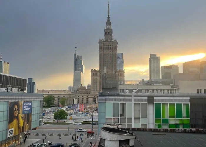 La cocina, equipada сon servicio de tetera/cafetera y hervidor eléctrico, nevera y cristalería, es perfecta para preparar comidas. La estación de tren Warsaw City Center está a 200 metros del apartamento y el aeropuerto Varsovia-Chopin se encuentra a 15 minutos en coche.